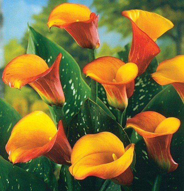 Povratak u trgovinuCalla pripada familiji Araceae. Potiče iz močvarnih delova Afrike. Lukovica se može saditi u slobodnu zemlju ili u saksije. Traže nešto težu zemlju koja mora biti bogata humusom i hranjivim materijama. Često se koristi mešavina baštenske zemlje, toplolejske zemlje i treseta. Biljkama najbolje odgovara neutralna reakcija zemljišta, ali dobro rastu i u slabokiselim ili slabo alkalnim zemljištima. Zahtevi za vodom su veoma veliki, pa zalivanje mora biti često i obilno. Takođe, i zahtevi za hranjivim materijama su veoma veliki. Dvonedeljno prihranjivanje je neophodno. Zbog veoma bujnog rasta potreba za azotom je takođe velika.Lepa je i zanimljiva kao rezano cveće zbog svojih posebnih cvetova na dugim stabljikama koji mogu opstati u vodi i do 10 dana. Može izrasti u visinu jedva 50 cm, dok gajene za rezano cveće, mogu dostići visinu od impozantnih 1,50 m. Cvetići su sakupljni u žućkasti blistavi klip. Levkasti omotač oko klipa zapravo je beli površni list čiji je zadatak domamljivanje insekata radi oprašivanja. Odnedavno postoje i sorte sa žutim i svetlim ili jako tamnim ružičastim površinskim listovima.
