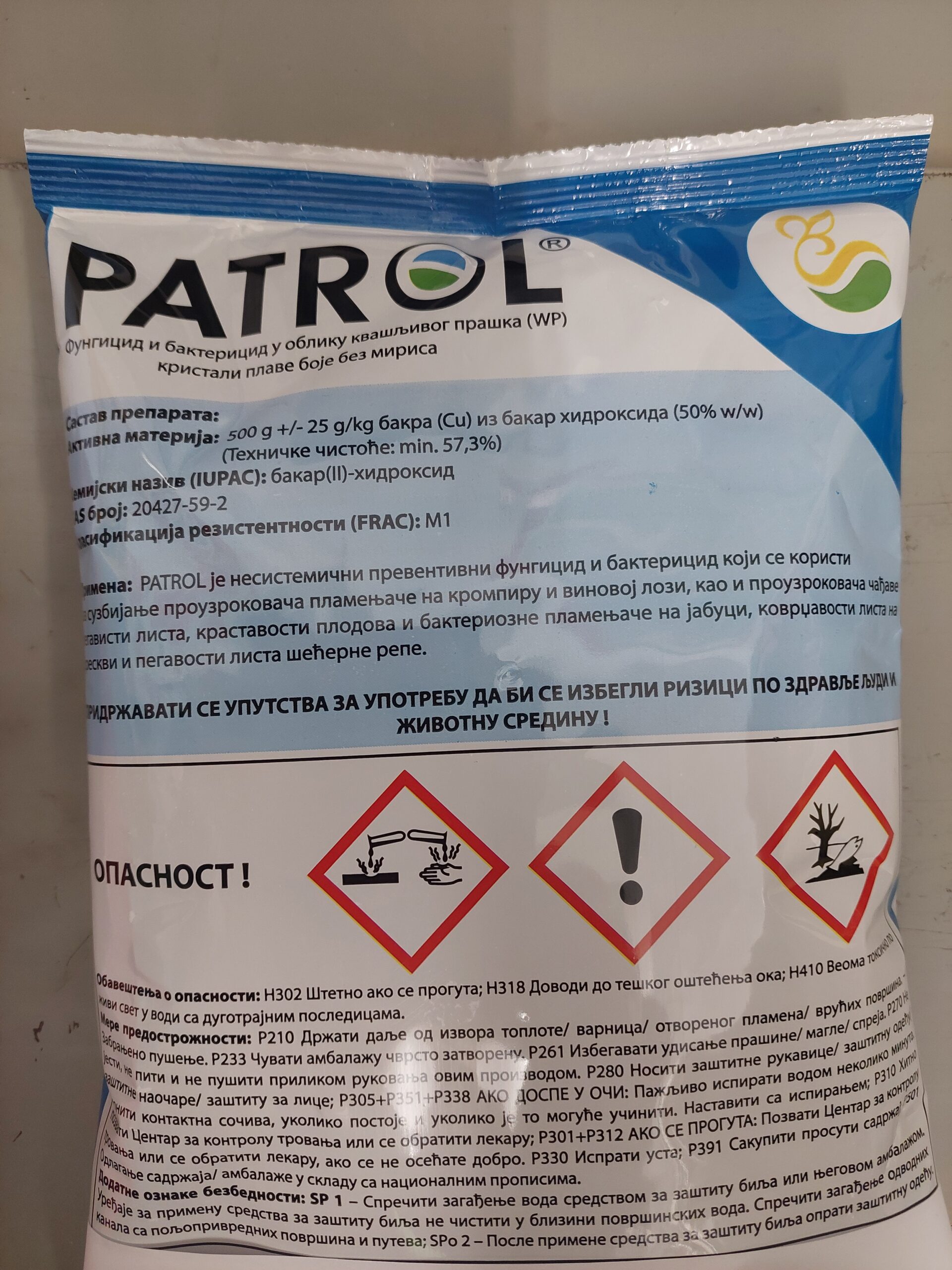 Zimski tretman jabučastog voća bakarnim preparatima dodatno smanjuje potencijal bakterijske plamenjače (Erwinia amylovora). Patrol ima širok spektar delovanja na gljive i bakterije kod biljaka. Njegova kvalitetna formulacija, uz prisustvo adheziva (lepka), čini ga postojanim na biljci i izuzetno otpornim na ispiranje kišom.